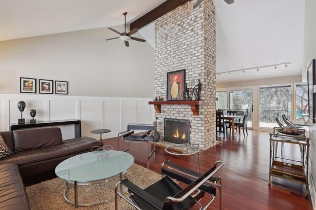 Along the winding, tree-lined streets of the Boulder Creek Neighborhood, enjoy this home with many custom details. From a wall of handsome Anderson windows to custom rails and stairs there are hardwood floors throughout the main level. Living and dining rooms have charming vaulted and beam ceilings. Kitchen with center island is open to dining room with 2 sided fireplace. 3 season porch has 180 views of the spectacular yard. Enjoy the outdoors from the tiered deck or patio. Storage shed. An irrigation system, too. Then relax - walk out of your primary suite to the deck with your morning cup or evening sip. Ensuite includes private 3/4 bath and fitted, walk-in closet. Hall bath updated with marble tile and jetted spa tub. Lower level has flexible spaces for home office with a fireplace. Family room and sitting area are light-filled through custom staircase and the upper level floor-to-ceiling windows. Both interior and exterior are newly painted and refreshed with new lighting.